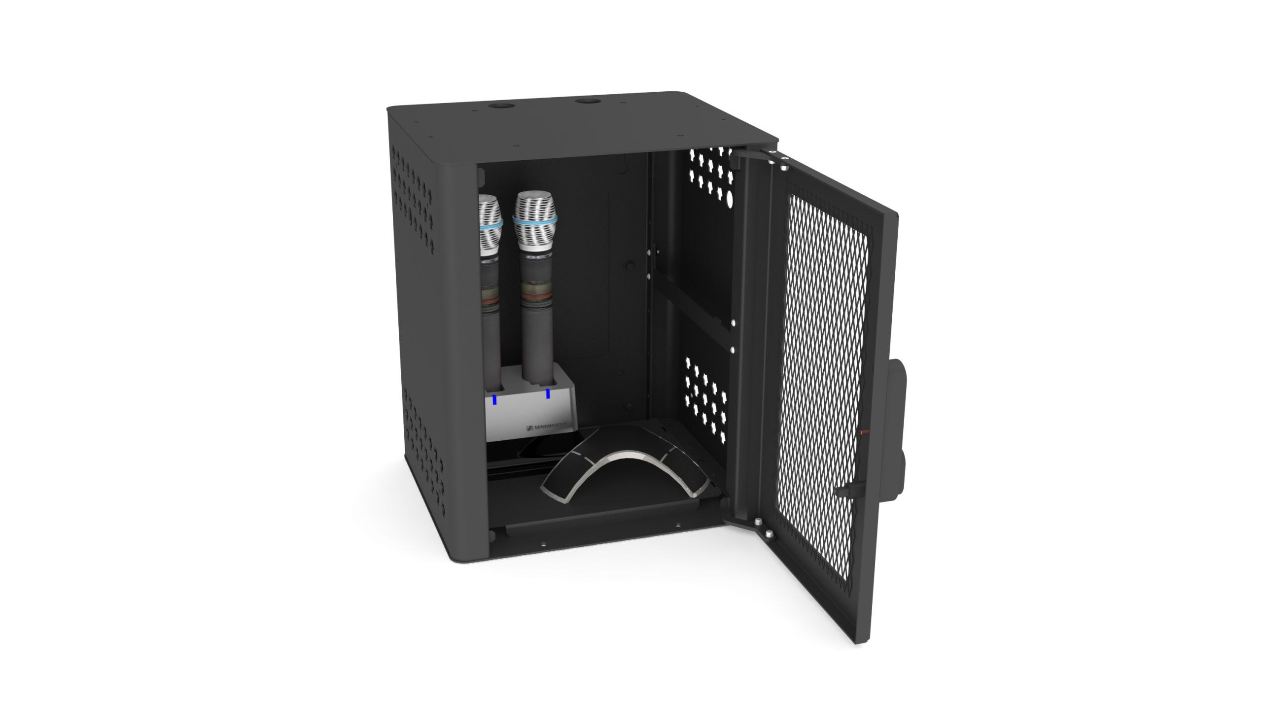 LockIT, marcă înregistrată Top-Tec, este dulapul compact, securizat, ideal pentru echipamente periferice precum microfoane și telecomenzi, cu montaj flexibil, rafturi ajustabile și ușă reversibilă. Soluția perfectă pentru birouri, săli AV și medii profesionale.